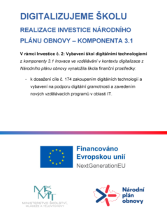 REALIZACE INVESTICE NÁRODNÍHO PLÁNU OBNOVY – KOMPONENTA 3.1